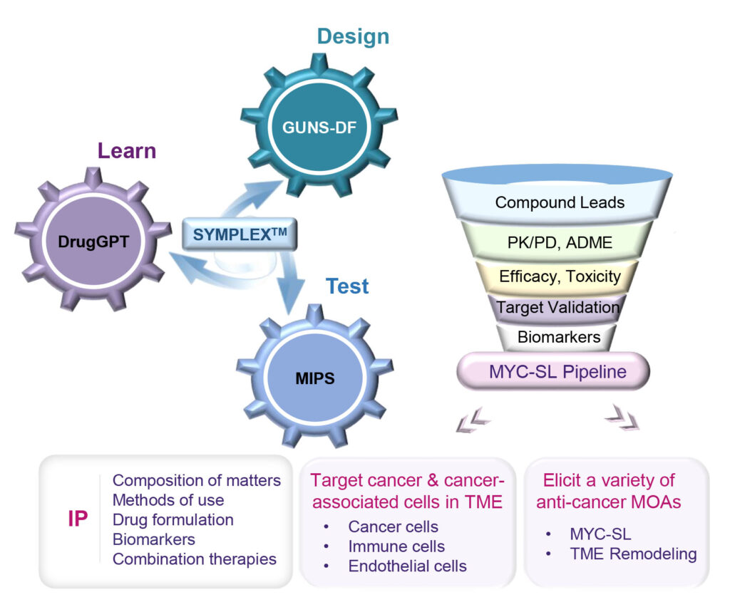 SYMPLEX™ is a self-renewing discovery engine that generates, screens, and optimizes MYC-SL drug candidates with novel mechanisms.